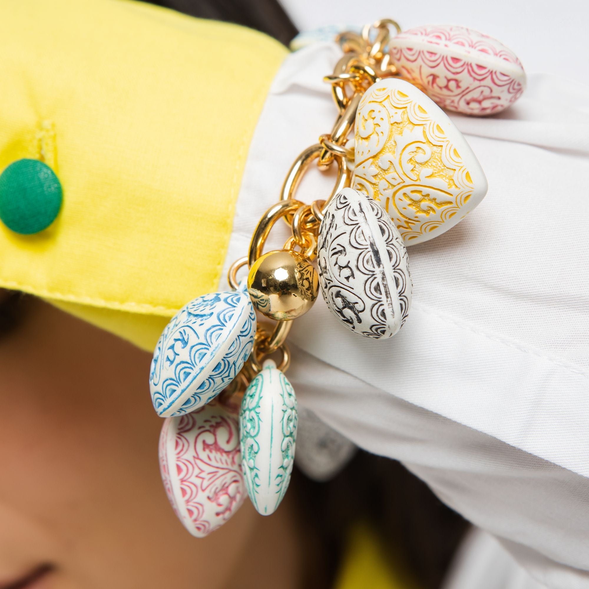 A coleção combina o toque pop da resina com elementos sofisticados como correntes douradas e pérolas, criando um contraste moderno entre o divertido e o elegante. O resultado são acessórios statement que funcionam tanto em produções básicas quanto em composições maximalistas.