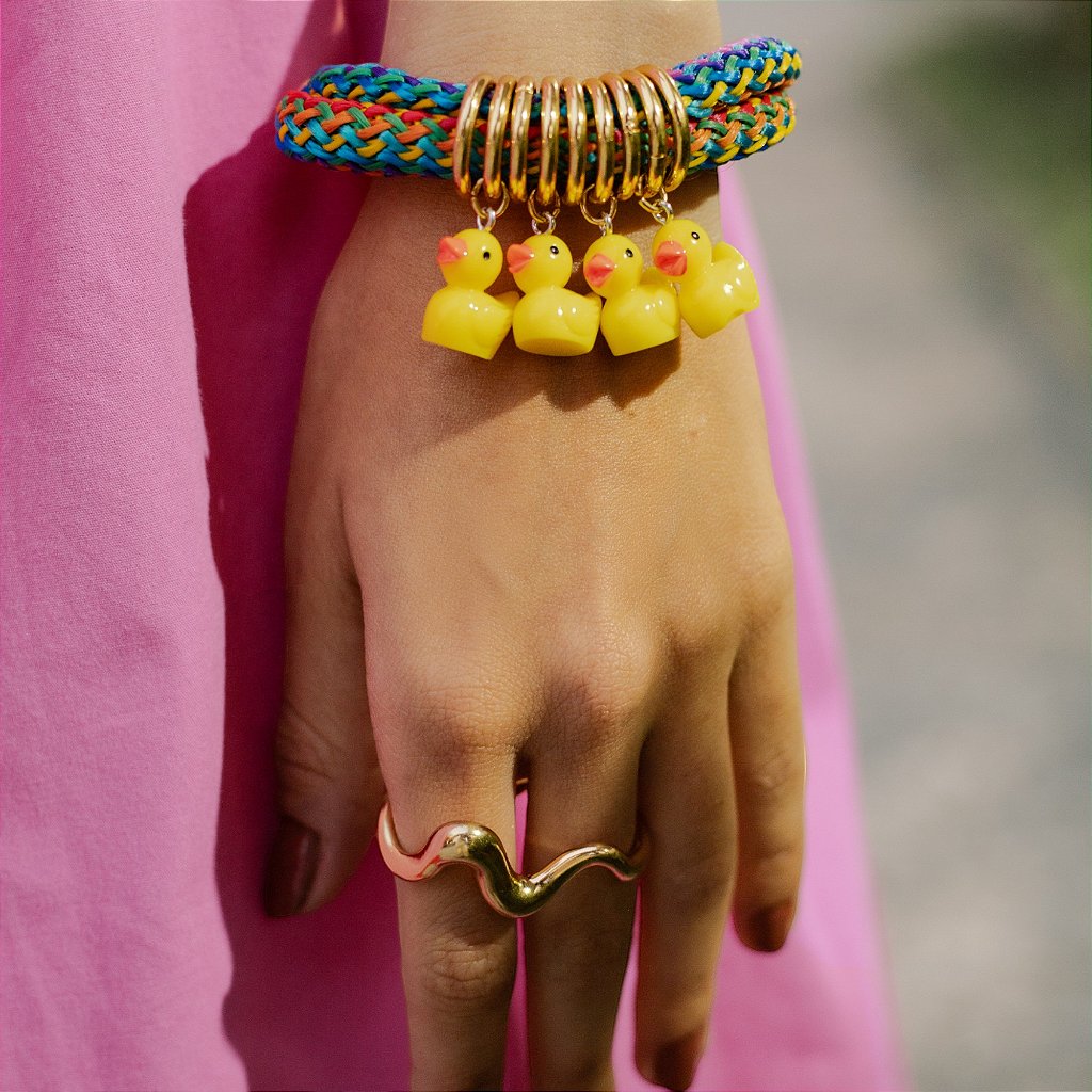 Com cores candy, acabamento polido e detalhes vibrantes como o bico vermelho e olhar minimalista, o Duck Pinky se torna um verdadeiro símbolo de personalidade. Cada peça da coleção — entre anéis, brincos, colares e pulseiras — foi criada para quem ama acessórios criativos, cheios de borogodó e capazes de transformar qualquer look.