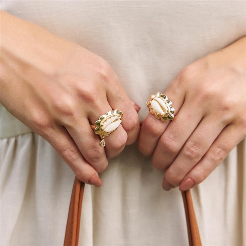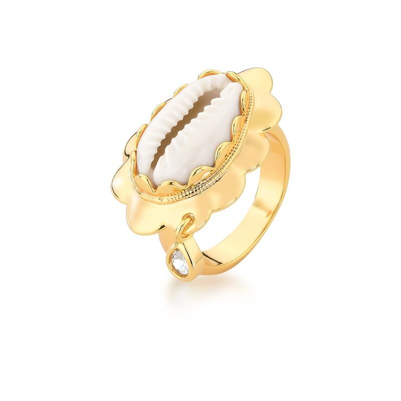 O Anel Búzios Brilhante é uma joia que transcende tendências, trazendo um toque de sofisticação ao seu visual. Com um design elegante que incorpora búzios em resina e um delicado cristal de gota branca, este anel não é apenas uma peça, mas uma verdadeira declaração de estilo. O banho de ouro e a camada de verniz de proteção garantem não apenas a beleza, mas também a durabilidade do acessório. É a escolha perfeita para quem busca exclusividade e classe em cada detalhe.