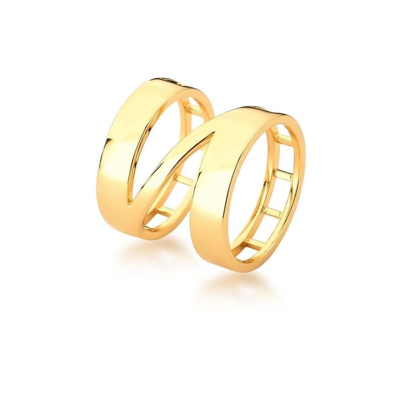 Anel Duas Voltas Trabalhado Vazado Dourado