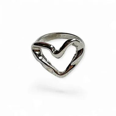 Anel Coração Vazado Prateado