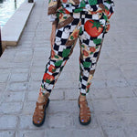 Combine com a camisa da mesma coleção para um conjunto que é pura performance visual — quase uma obra de arte vestível. Ou use com camiseta neutra e tênis para deixar a calça brilhar como protagonista do look.
