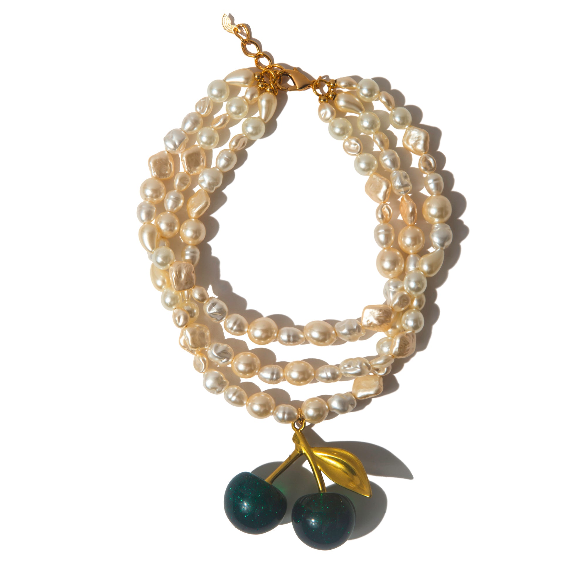 O Colar Triplo Pérola Cerejão Preto é o equilíbrio perfeito entre o clássico e o divertido. As pérolas barrocas em diferentes formatos dão um ar sofisticado e orgânico, enquanto o pingente de cereja preta com brilho sutil traz aquele toque pop irresistível da EneEne. A peça é feita à mão, com um caimento elegante que valoriza o colo e transforma qualquer look básico em uma produção com personalidade e frescor.
