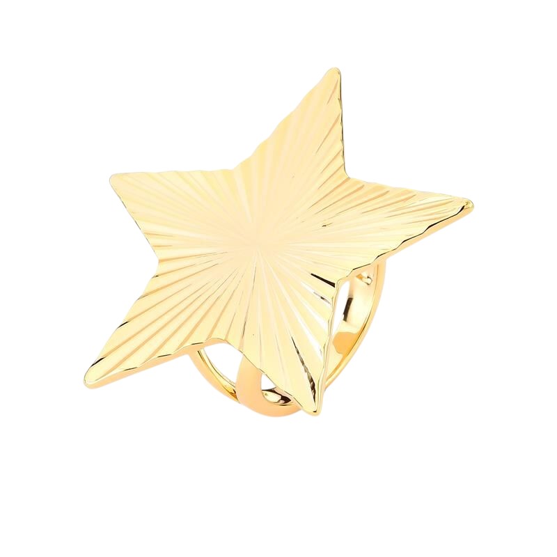 Anel De Estrela Texturizado Liso Prateado Banho Ródio