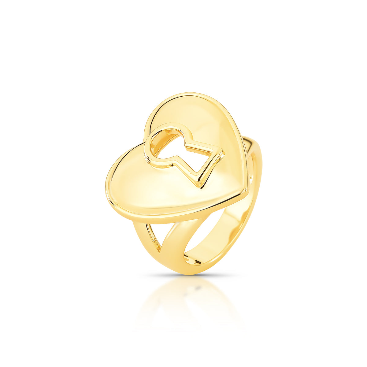 Anel Coração Chave Vazado Dourado