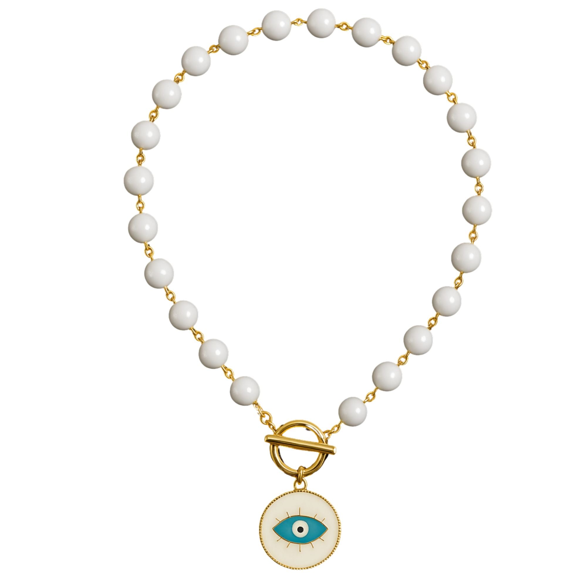 O Colar Olho Grego Ene Ene é mais do que um acessório — é um amuleto contemporâneo que une design artesanal, materiais de alta qualidade e significado poderoso. Produzido à mão com esferas brancas polidas e o icônico pingente de olho grego esmaltado em azul e dourado, ele simboliza proteção, sorte e energia positiva. O contraste entre o branco luminoso e o azul profundo cria um visual sofisticado e atemporal, que combina com tudo — do look minimalista ao mais ousado.