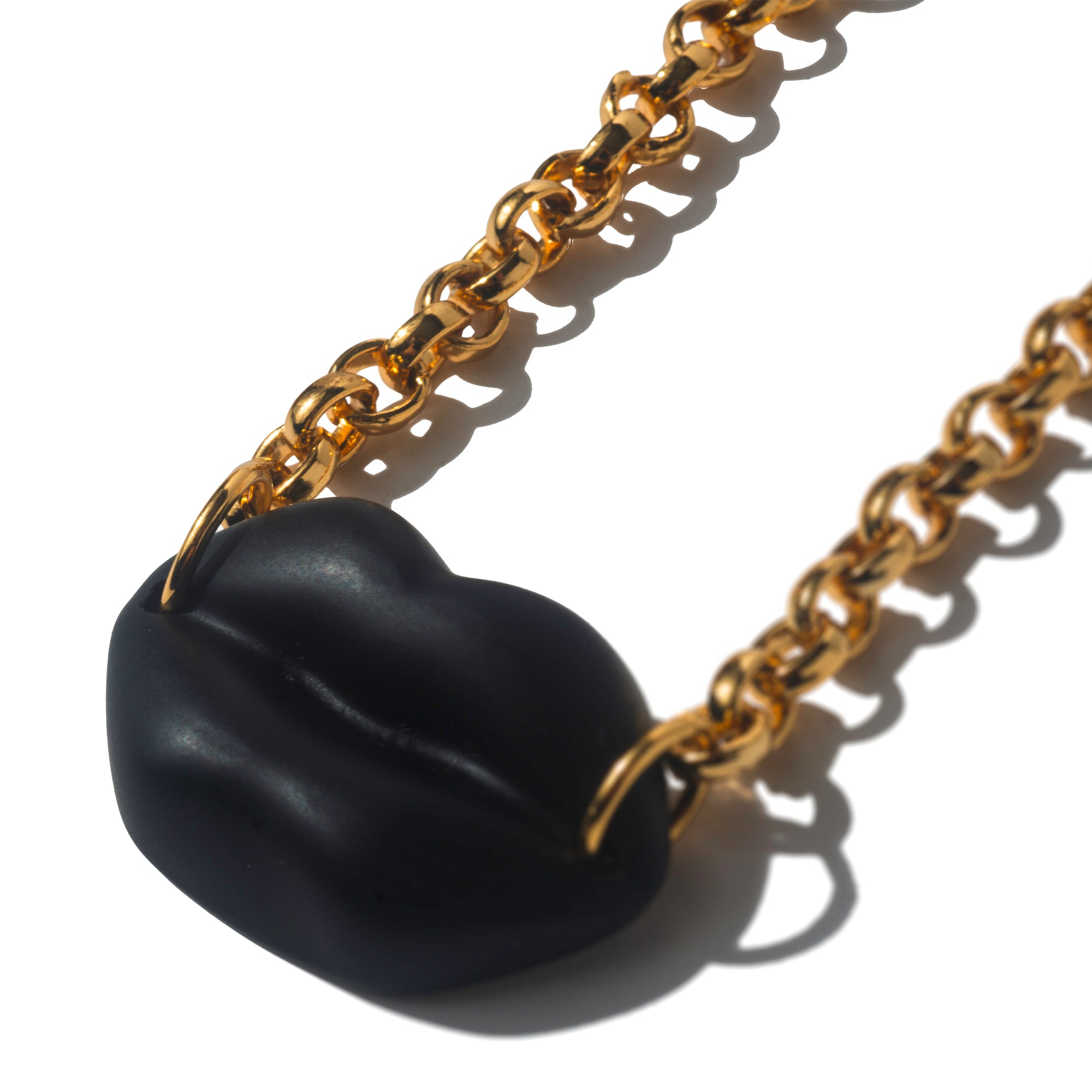 O Colar Corrente Beijo traz um pingente de boca em resina fosca pendurado em uma corrente, criando aquele ponto focal perfeito pra quem ama um visual com personalidade. É o tipo de acessório que transforma a produção básica em algo cool e cheio de atitude. O pingente escultural tem acabamento fosco e é feito com resina especial, nossa assinatura autoral que mistura irreverência, humor e design.